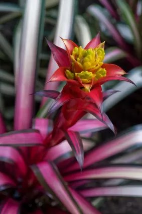 Healthy tropical bromeliad plant with colorful leaves thriving indoors