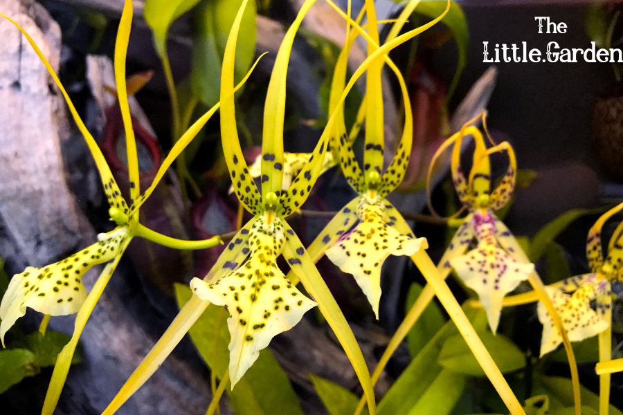 Las Brassias son conocidas por sus largos pétalos en forma de araña que pueden alcanzar hasta 25 cm de longitud.