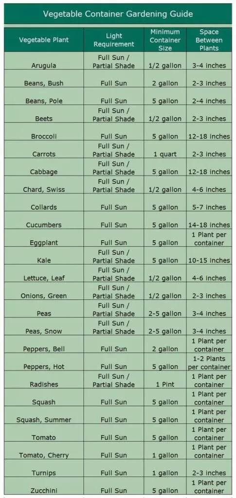 Voici un guide rapide sur le jardinage de légumes en contenants, décrivant les besoins en soleil pour différents légumes :