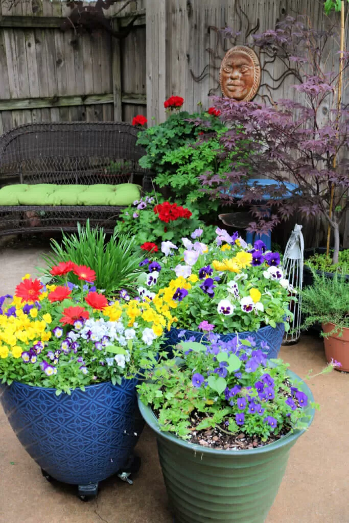 Pour des arrangements de contenants visuellement attrayants, considérez le concept « vedette, remplissage et retombante » :