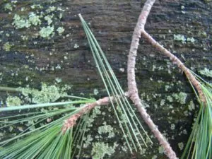 alt text: Eastern white pine branches displaying five-needle fascicles and a soft appearance due to the deciduous fascicle sheath.